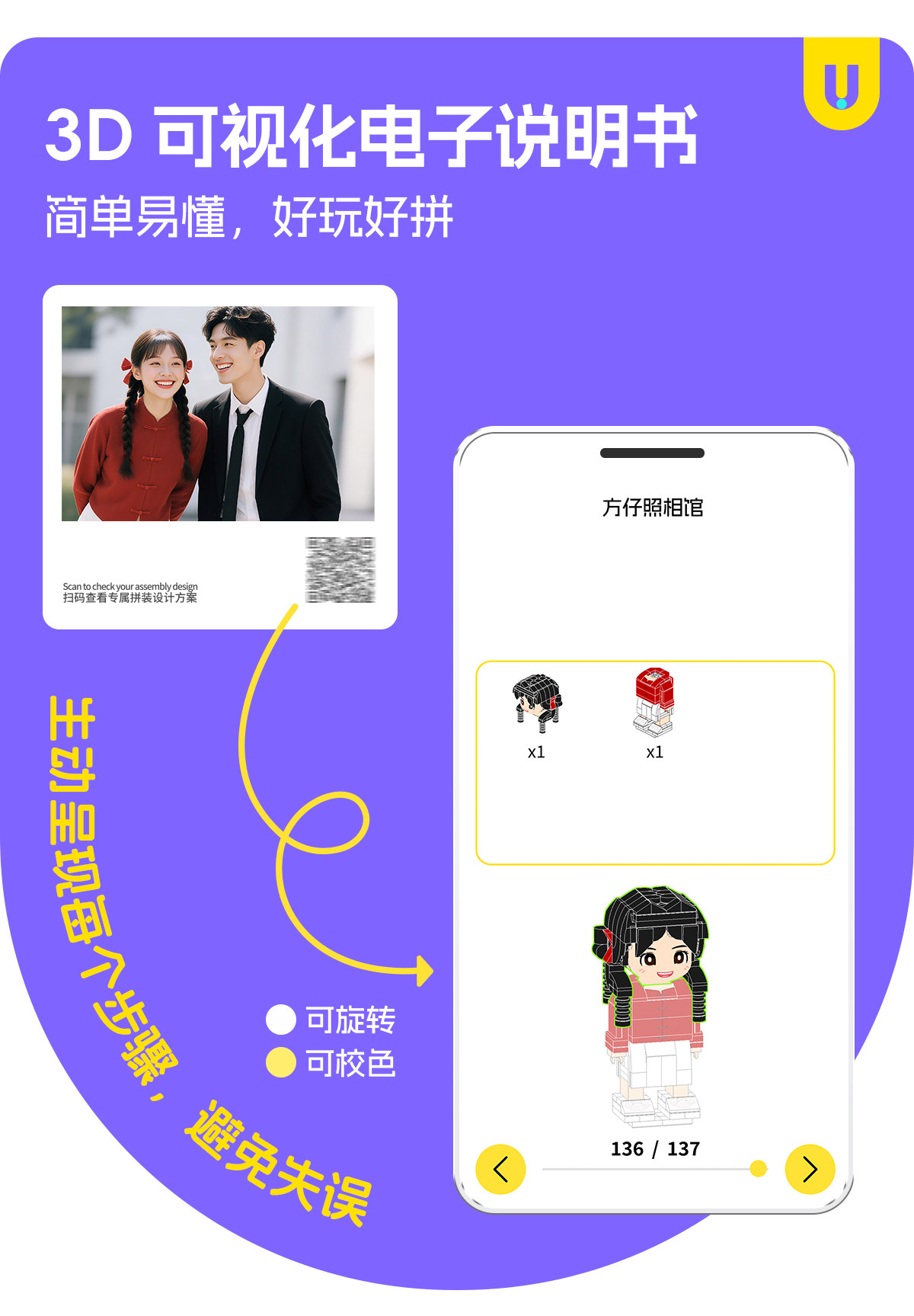 Fang Zai photo studio photo custom building block portrait couple wedding ornament for girlfriend's birthday wedding gift girl