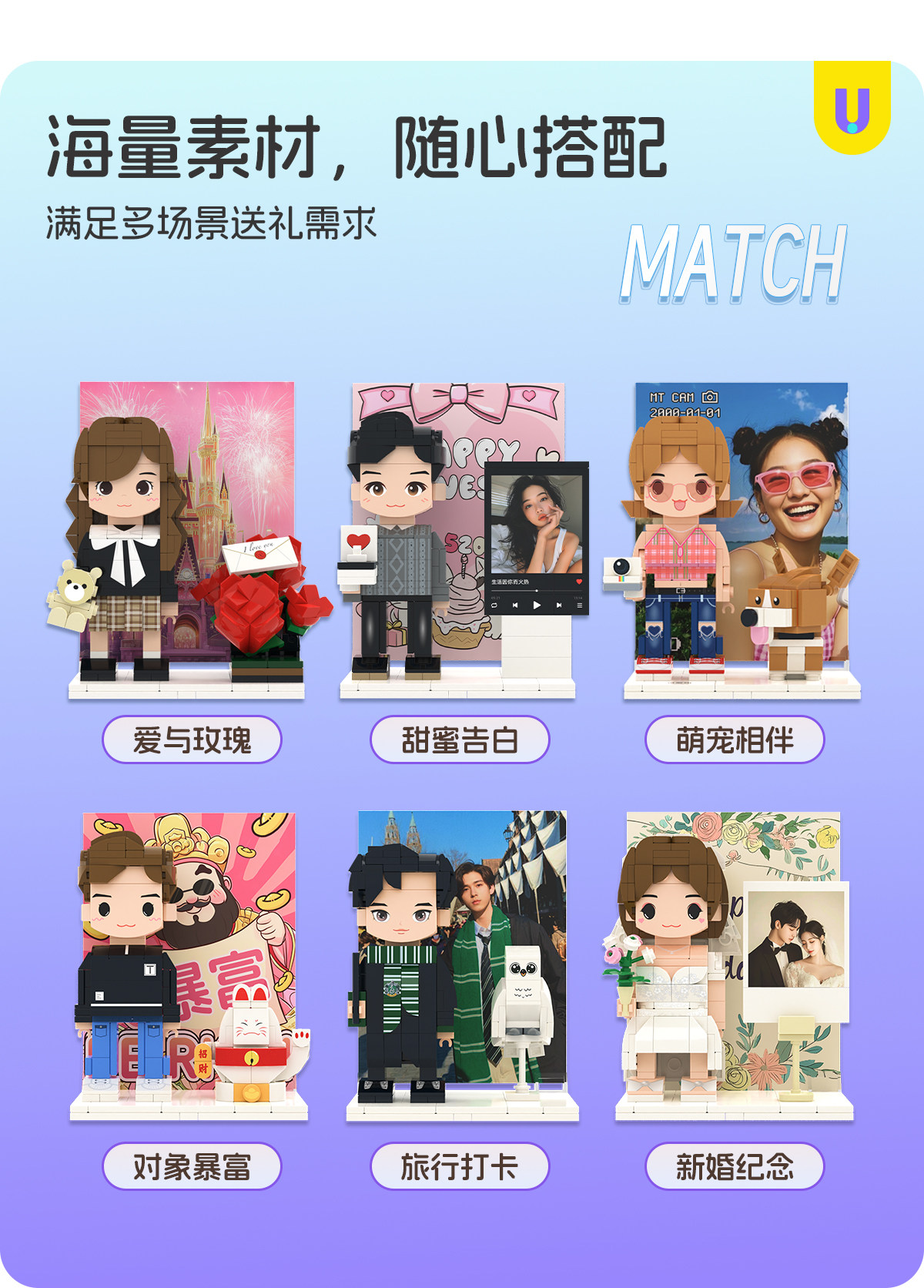 Fang Zai World Photo Studio Birthday Gift DIY Building Blocks Portrait Doll Couple Commemorative Gift Ornament for Girls